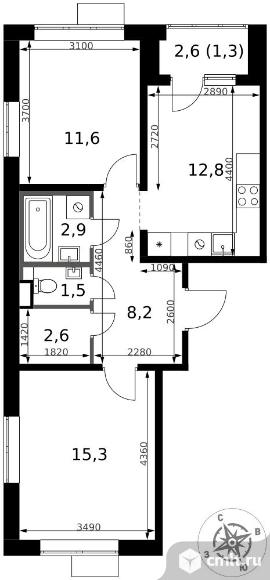 Перейти к актуальным объявлениям рубрики Квартиры. 2-комнатная квартира 56,2 кв.м