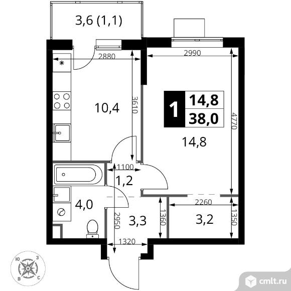 1-комнатная квартира 38 кв.м