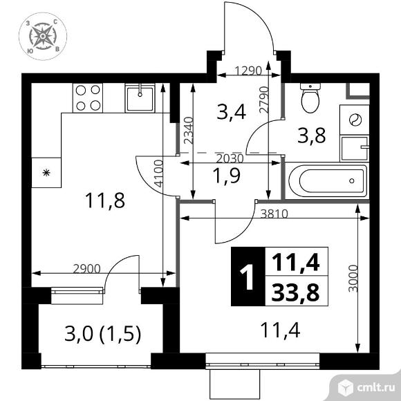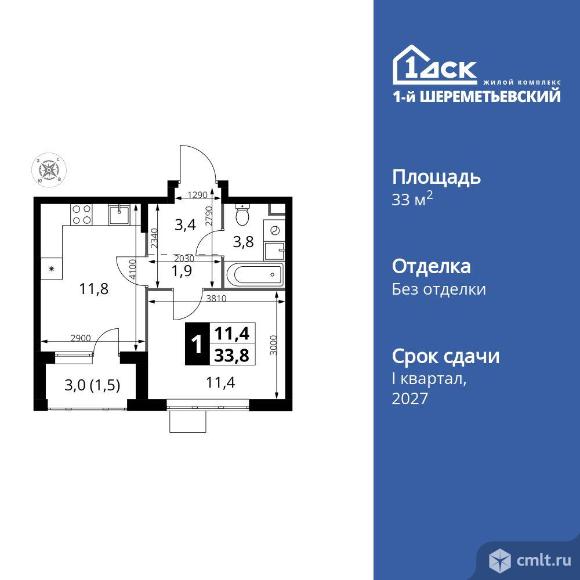 Перейти к актуальным объявлениям рубрики Квартиры. 1-комнатная квартира 33,8 кв.м