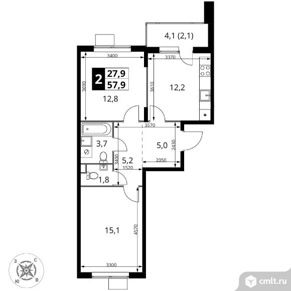 Перейти к актуальным объявлениям рубрики Квартиры. 2-комнатная квартира 57,9 кв.м
