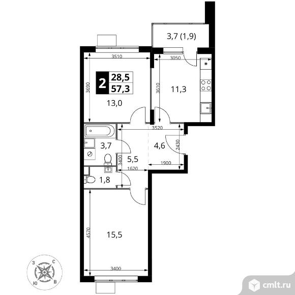Перейти к актуальным объявлениям рубрики Квартиры. 2-комнатная квартира 57,3 кв.м