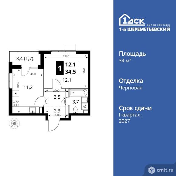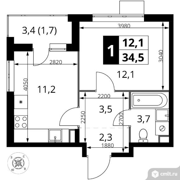 Перейти к актуальным объявлениям рубрики Квартиры. 1-комнатная квартира 34,5 кв.м