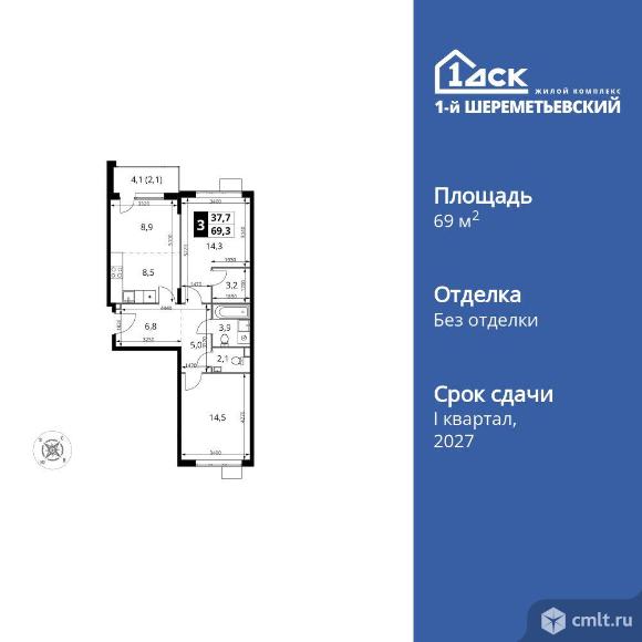 3-комнатная квартира 69,3 кв.м
