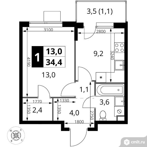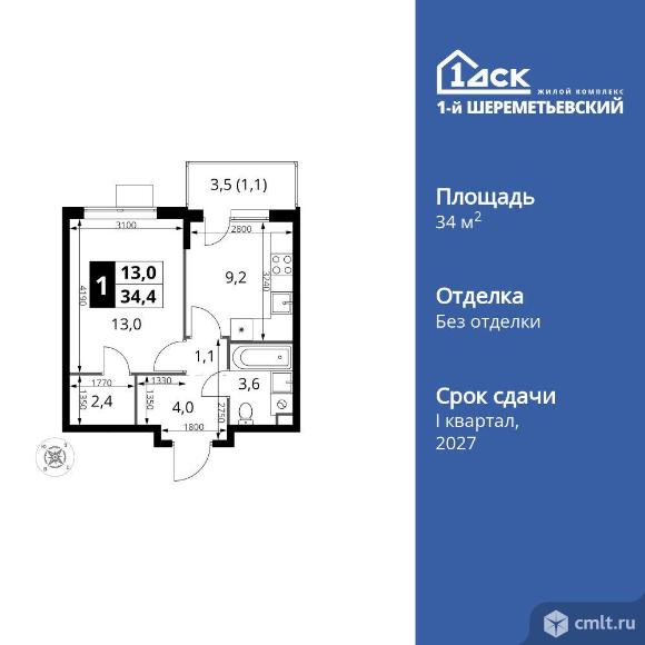 Перейти к актуальным объявлениям рубрики Квартиры. 1-комнатная квартира 34,4 кв.м