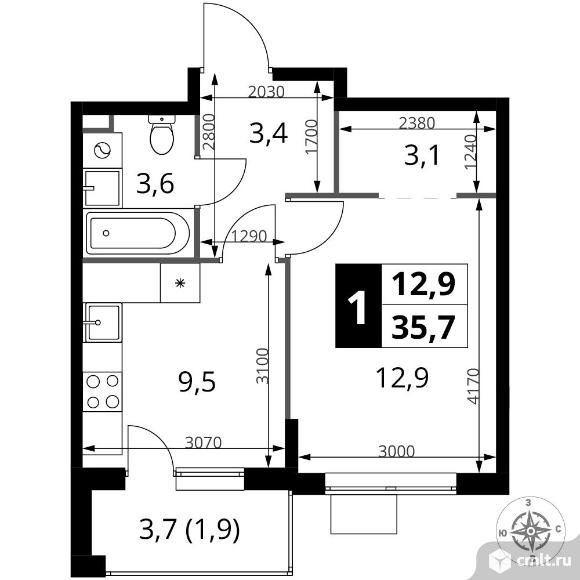 Перейти к актуальным объявлениям рубрики Квартиры. 1-комнатная квартира 35,7 кв.м