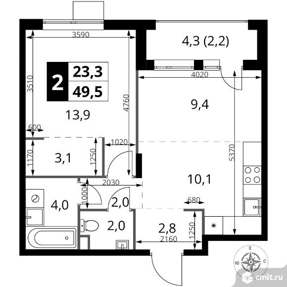 Перейти к актуальным объявлениям рубрики Квартиры. 2-комнатная квартира 49,5 кв.м