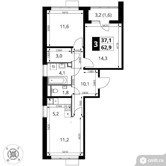 Перейти к актуальным объявлениям рубрики Квартиры. 3-комнатная квартира 62,9 кв.м