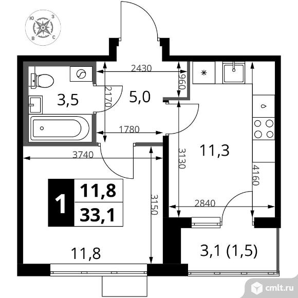 Перейти к актуальным объявлениям рубрики Квартиры. 1-комнатная квартира 33,1 кв.м