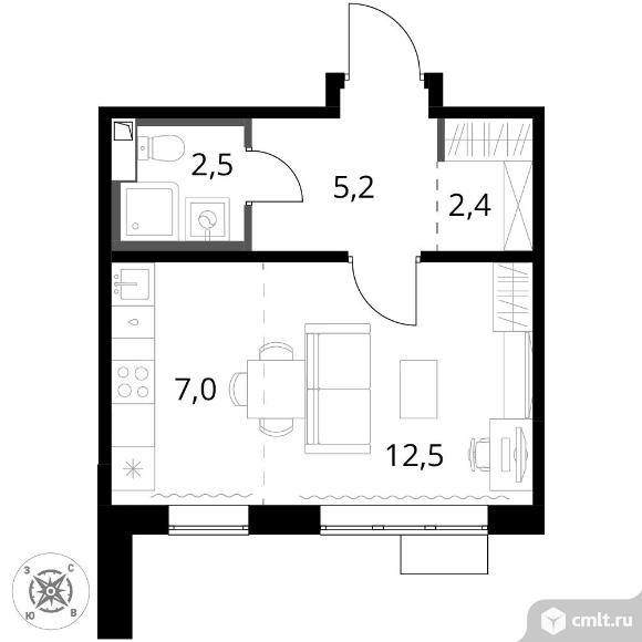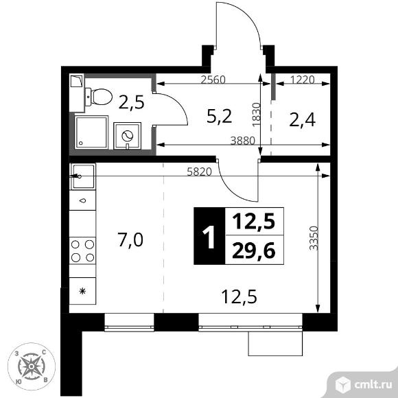 1-комнатная квартира 29,6 кв.м