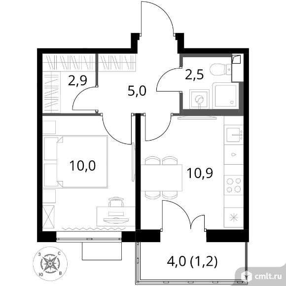 1-комнатная квартира 32,5 кв.м