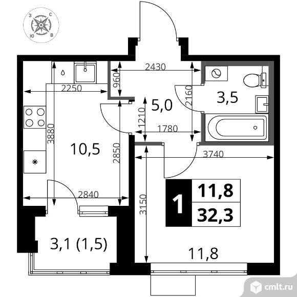 Перейти к актуальным объявлениям рубрики Квартиры. 1-комнатная квартира 32,3 кв.м