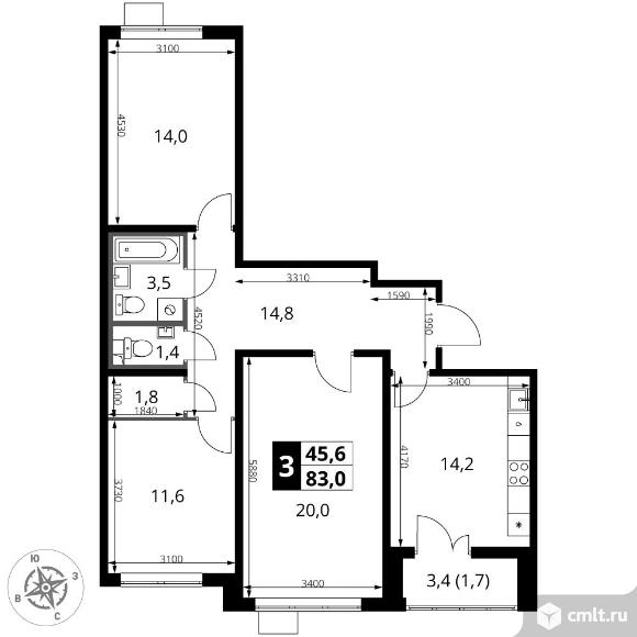 Перейти к актуальным объявлениям рубрики Квартиры. 3-комнатная квартира 83 кв.м