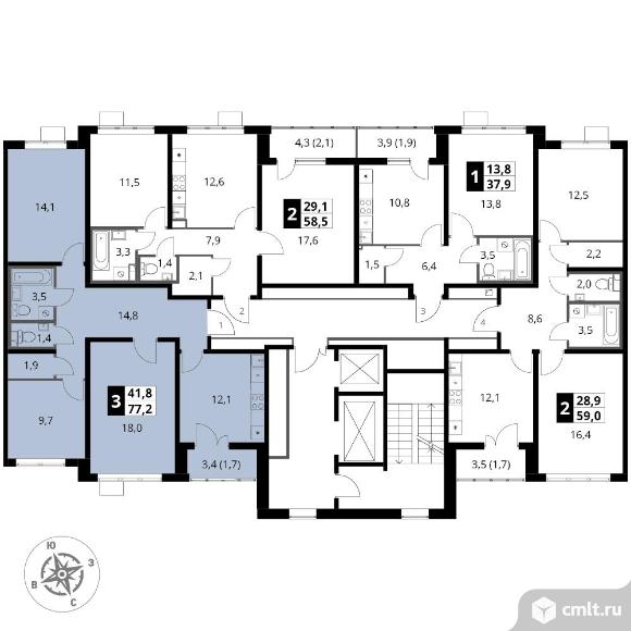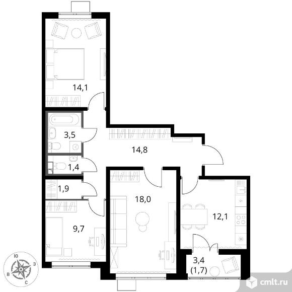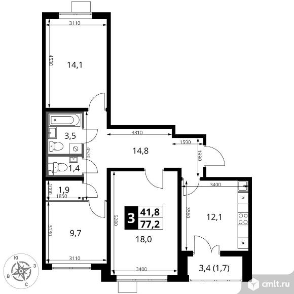 3-комнатная квартира 77,2 кв.м