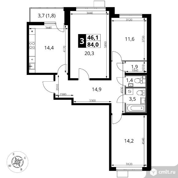 Перейти к актуальным объявлениям рубрики Квартиры. 3-комнатная квартира 84 кв.м