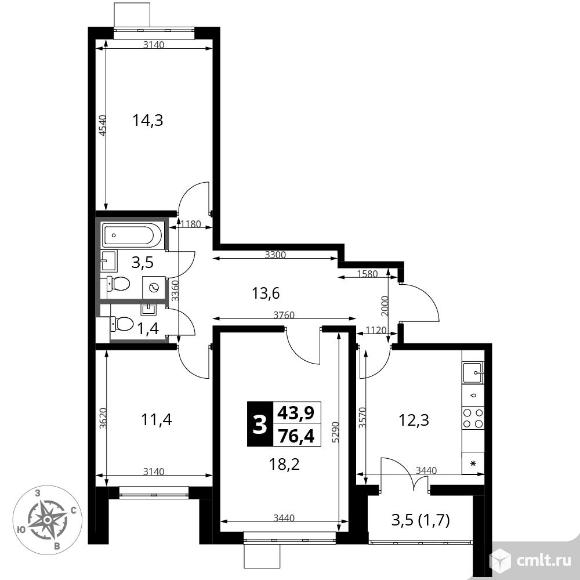 Перейти к актуальным объявлениям рубрики Квартиры. 3-комнатная квартира 76,4 кв.м