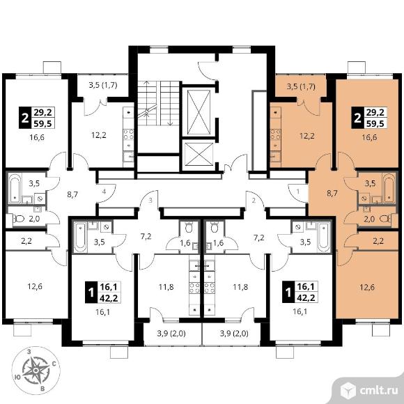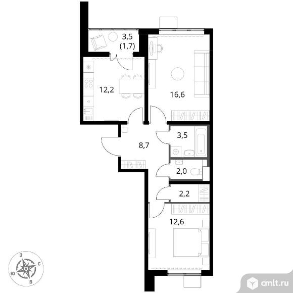 2-комнатная квартира 59,5 кв.м