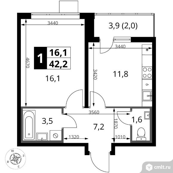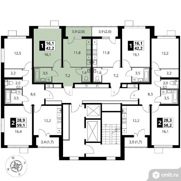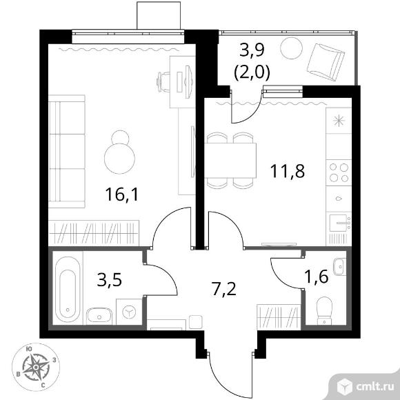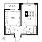 1-комнатная квартира 42,1 кв.м