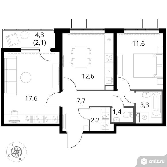 Перейти к актуальным объявлениям рубрики Квартиры. 2-комнатная квартира 58,4 кв.м