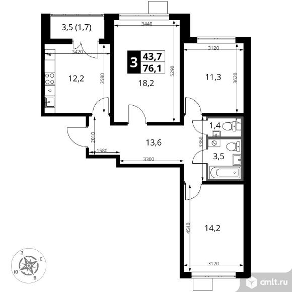 3-комнатная квартира 76,1 кв.м
