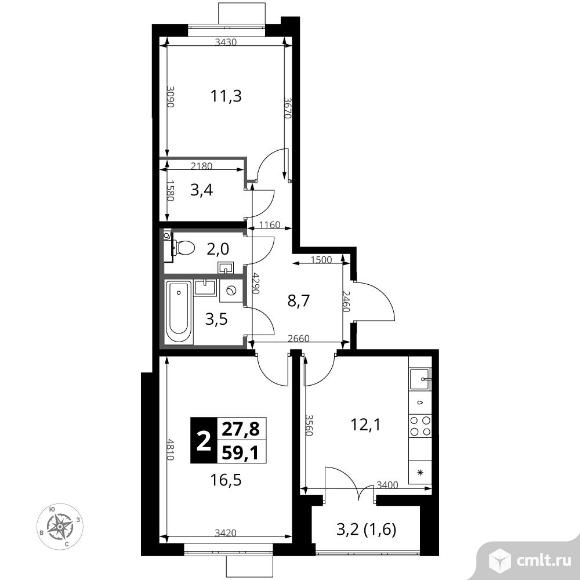 Перейти к актуальным объявлениям рубрики Квартиры. 2-комнатная квартира 59,1 кв.м