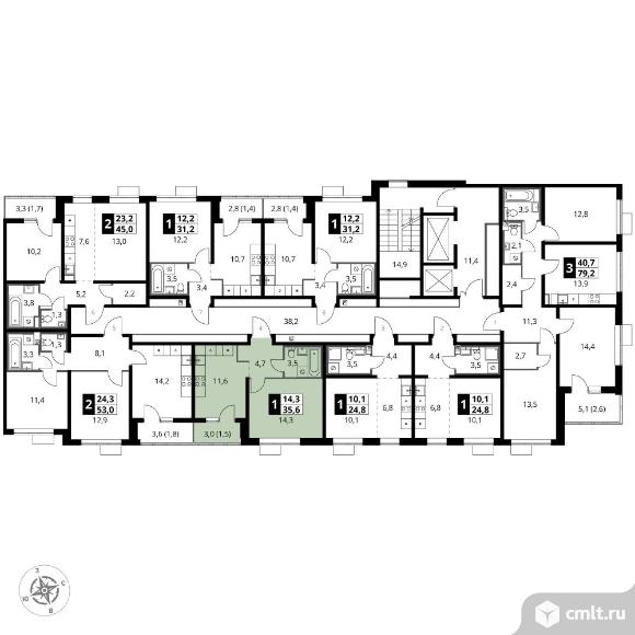 1-комнатная квартира 35,6 кв.м