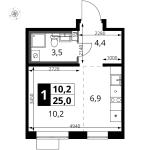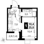 1-комнатная квартира 25 кв.м