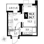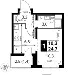 1-комнатная квартира 26,4 кв.м