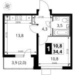 1-комнатная квартира 33,1 кв.м