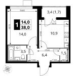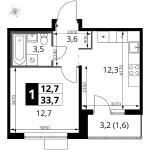 1-комнатная квартира 37,2 кв.м