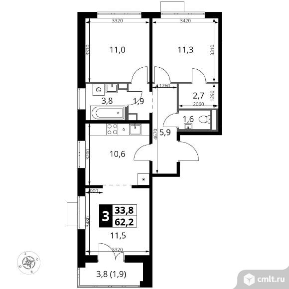 Перейти к актуальным объявлениям рубрики Квартиры. 3-комнатная квартира 62,2 кв.м
