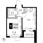 1-комнатная квартира 35,2 кв.м