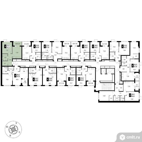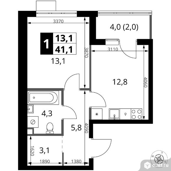 1-комнатная квартира 41,1 кв.м