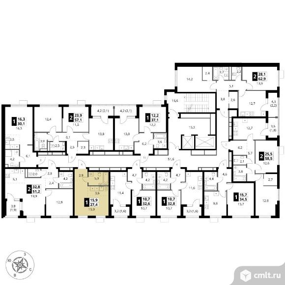 1-комнатная квартира 27,4 кв.м