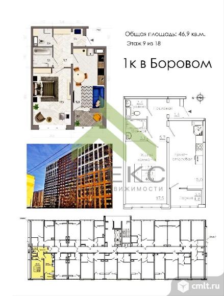 1-комнатная квартира 45,1 кв.м