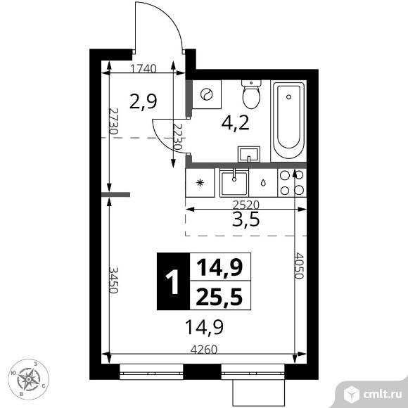 1-комнатная квартира 25,5 кв.м