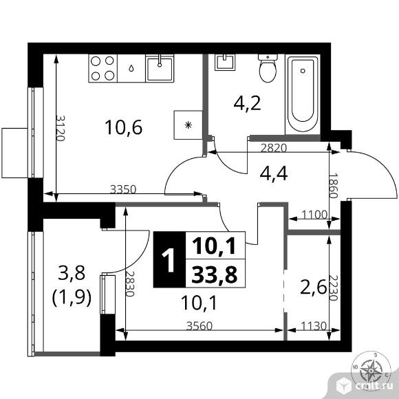 Перейти к актуальным объявлениям рубрики Квартиры. 1-комнатная квартира 33,8 кв.м