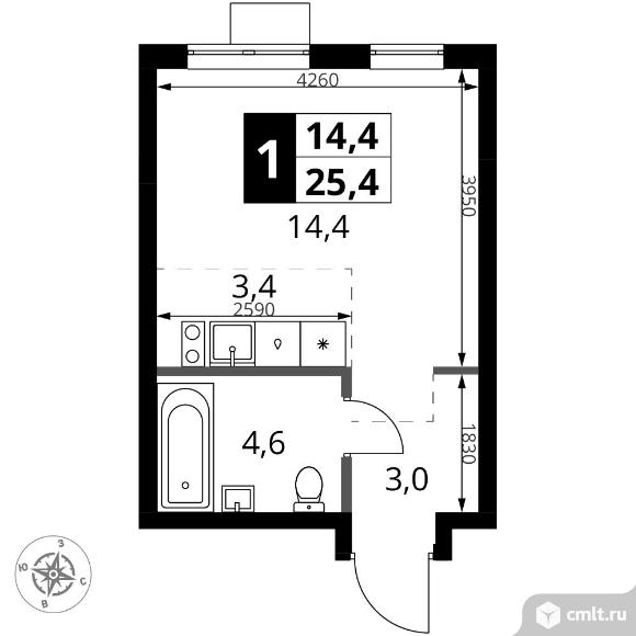 1-комнатная квартира 25,4 кв.м