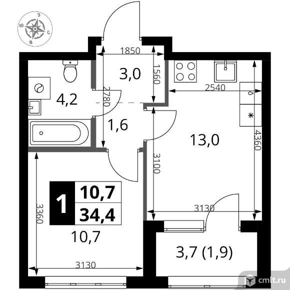 Перейти к актуальным объявлениям рубрики Квартиры. 1-комнатная квартира 34,4 кв.м