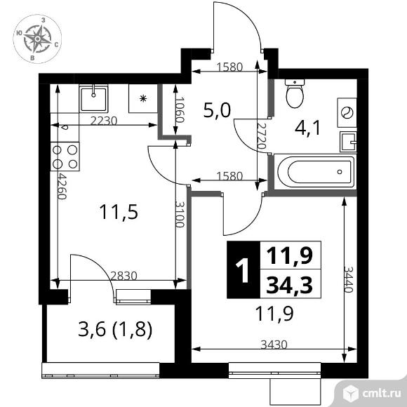 Перейти к актуальным объявлениям рубрики Квартиры. 1-комнатная квартира 34,3 кв.м