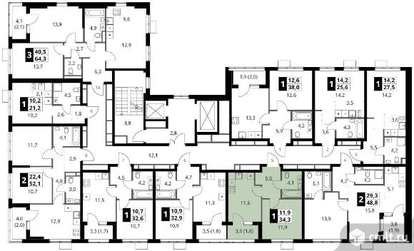 1-комнатная квартира 34,3 кв.м