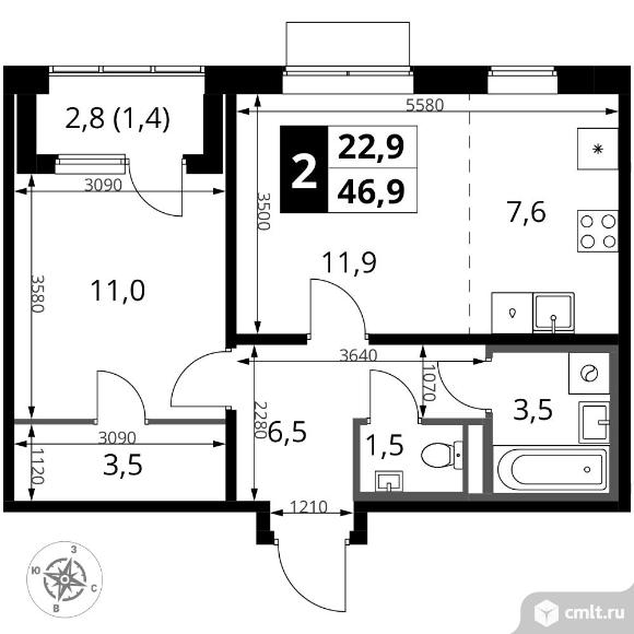 Перейти к актуальным объявлениям рубрики Квартиры. 2-комнатная квартира 46,9 кв.м