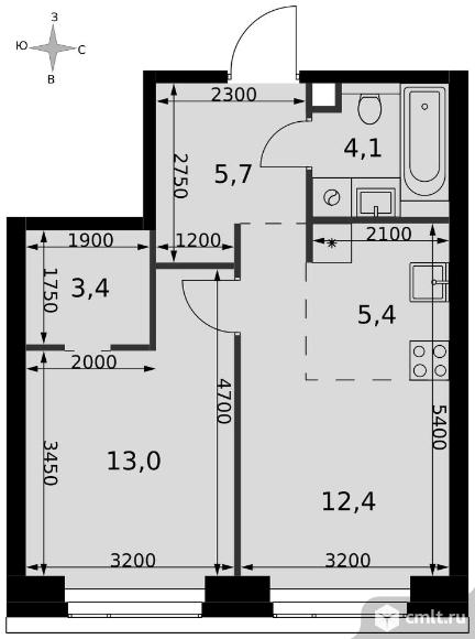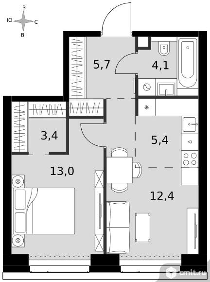 2-комнатная квартира 44 кв.м