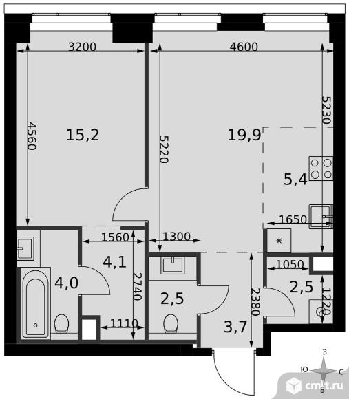 2-комнатная квартира 57,3 кв.м