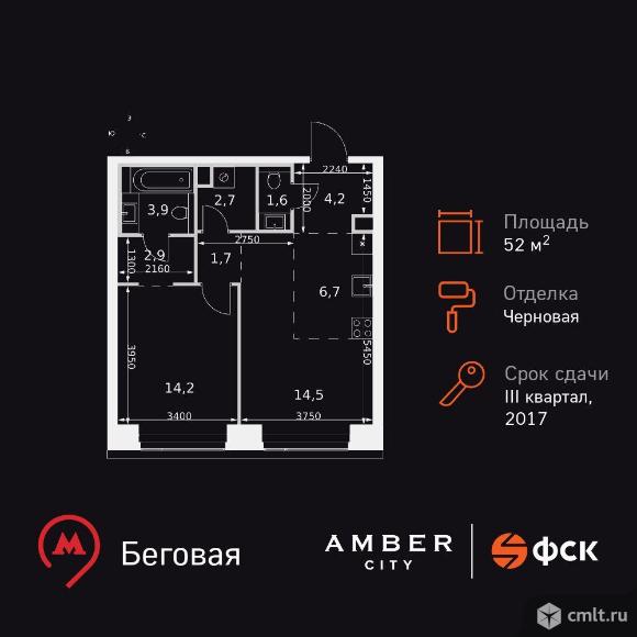 2-комнатная квартира 52,4 кв.м