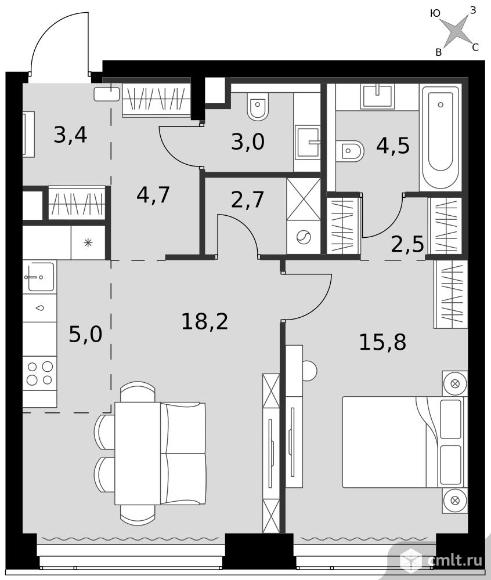 2-комнатная квартира 59,8 кв.м