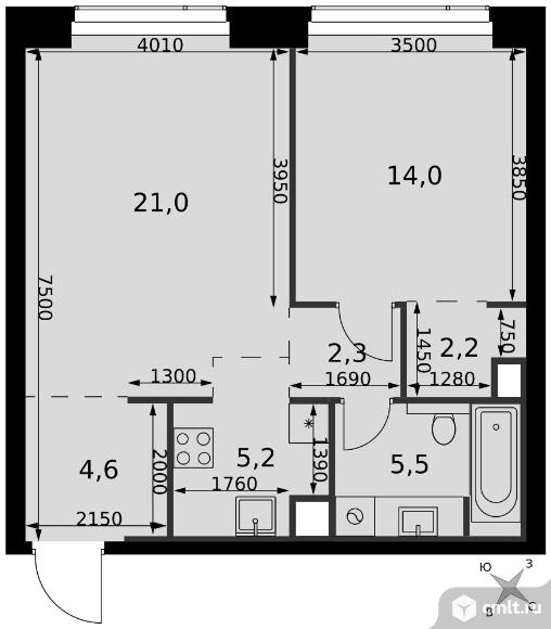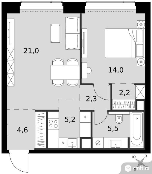 2-комнатная квартира 54,8 кв.м