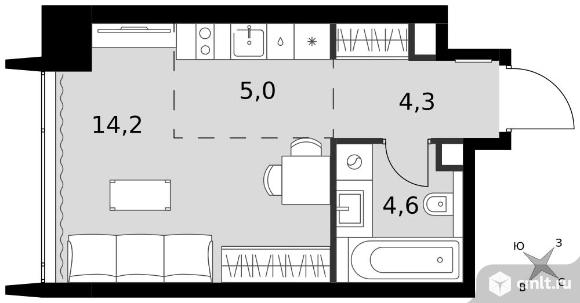 1-комнатная квартира 28,1 кв.м