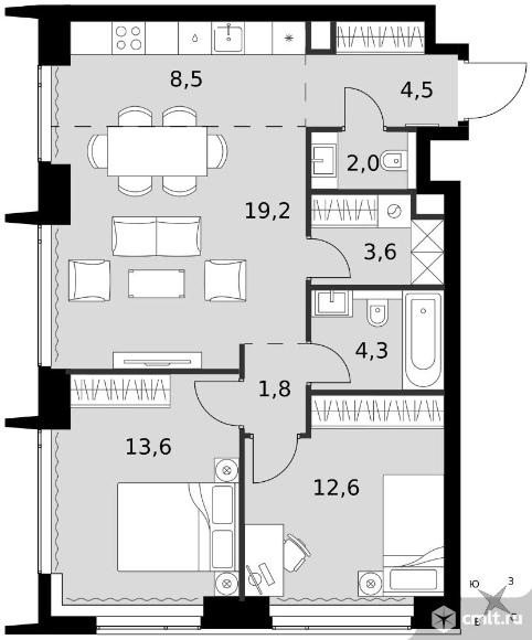 3-комнатная квартира 70,1 кв.м