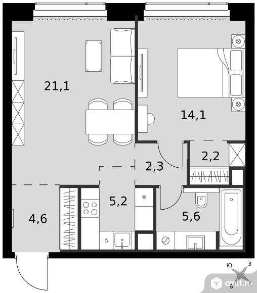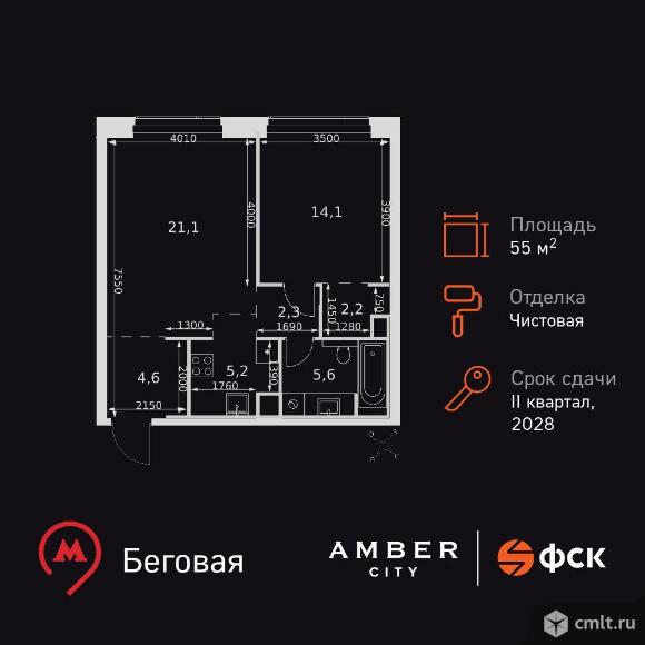 2-комнатная квартира 55,1 кв.м