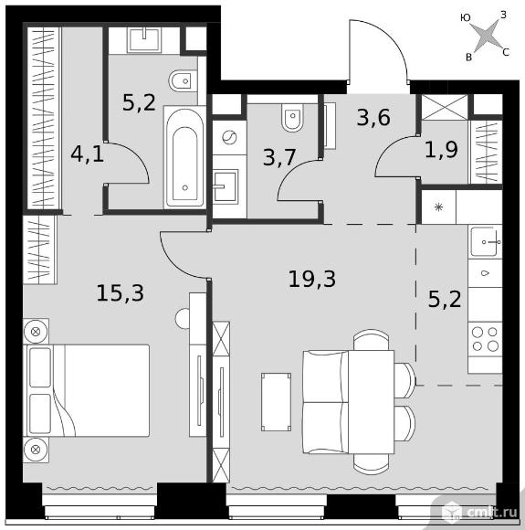 2-комнатная квартира 58,3 кв.м